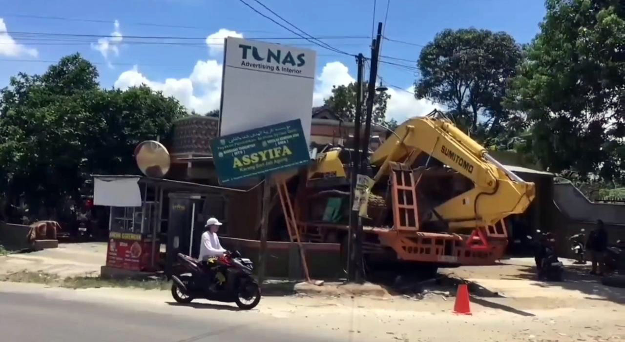 Lampung Selatan – Kecelakaan Kendaraan tronton pengangkut eksavator yang menabrak rumah toko sembako di Desa Karang Sari, Kecamatan Jati Agung, Lampung Selatan hingga selasa siang (7/4) masih dalam penyelidikan Kepolisian. pengemudi truk tronton kabur sesaat usai kecelakaan terjadi, sedangkan kondekturnya di rawat di rumah sakit menderita luka-luka.